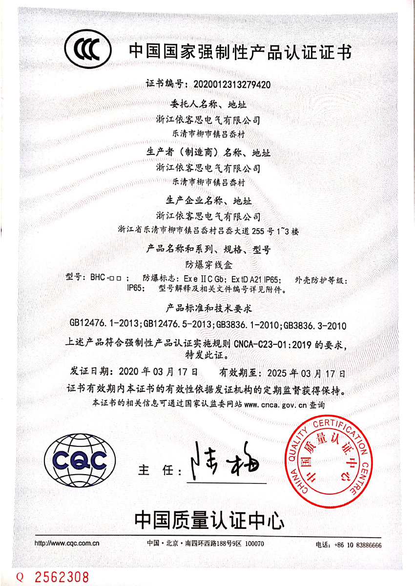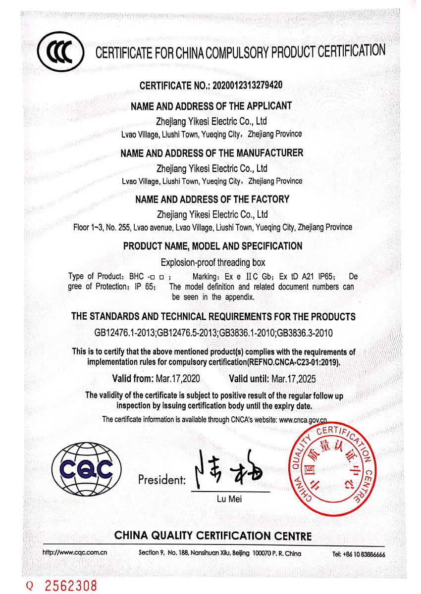 防爆穿線盒CCC證書