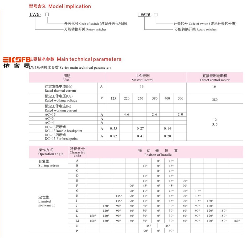 • LW□-係列萬能轉換開關