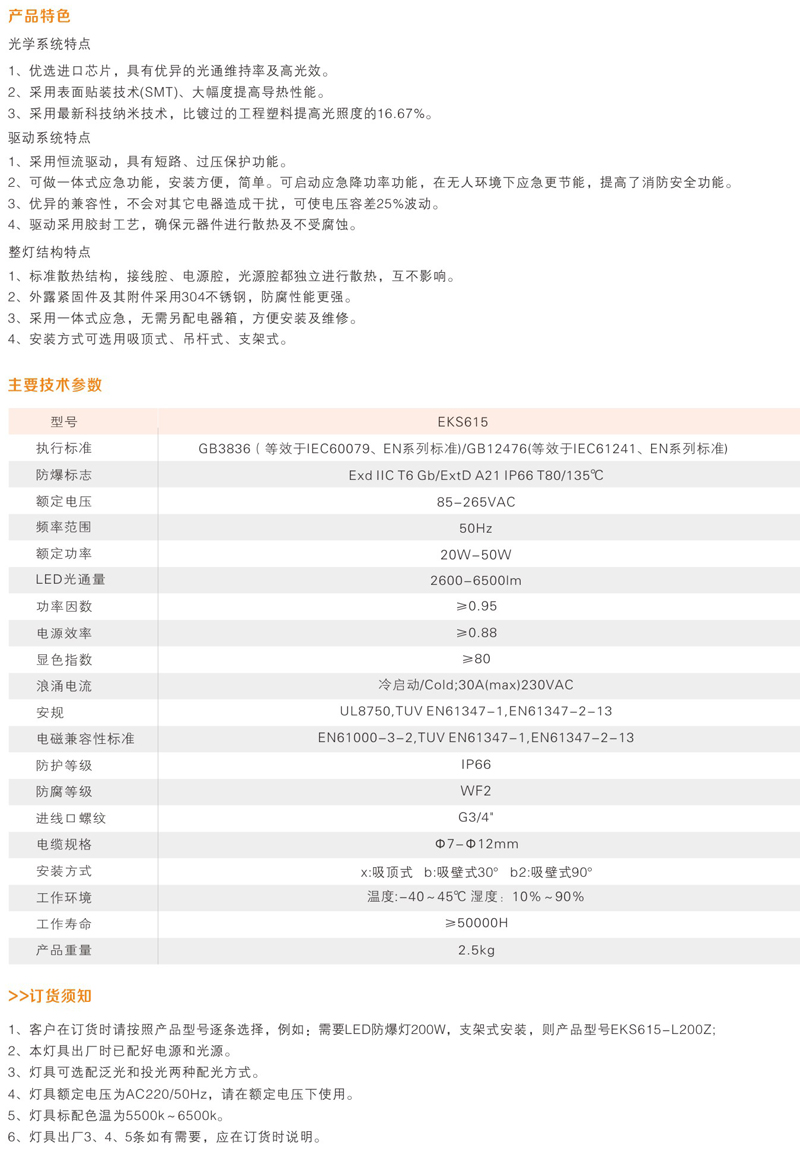• EKS615-50W吸壁式LED防爆燈