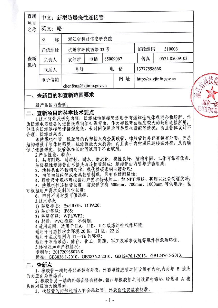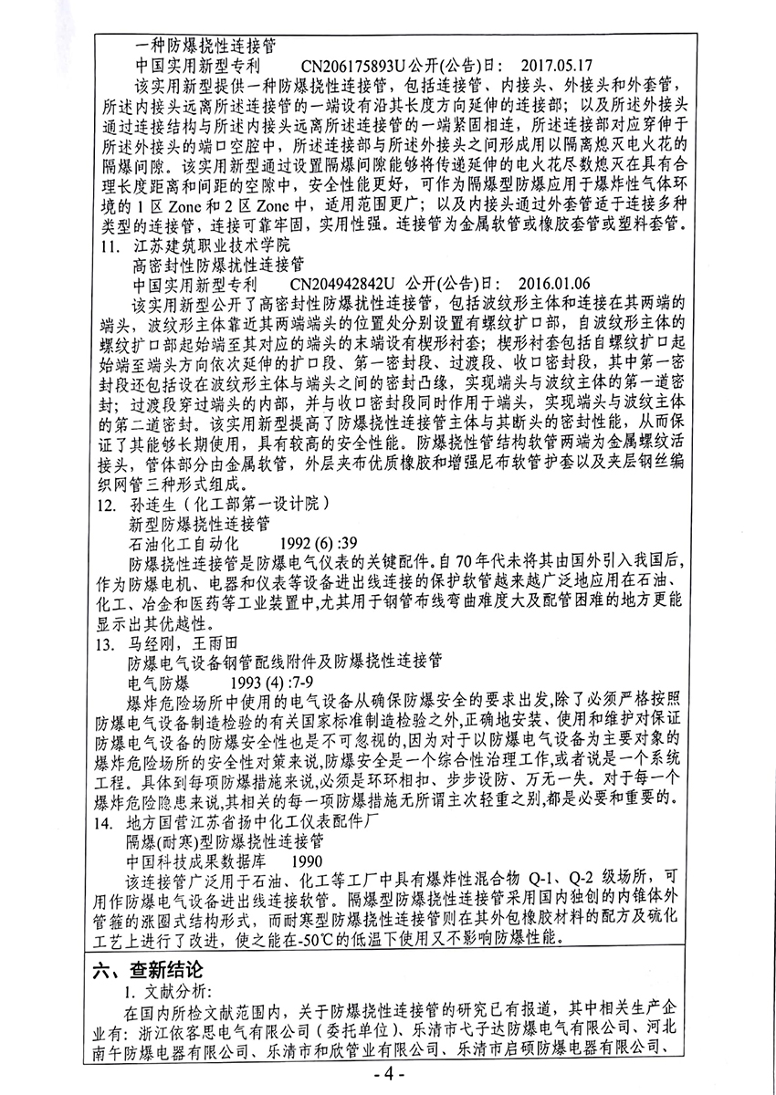 防爆撓性管科技查新報告